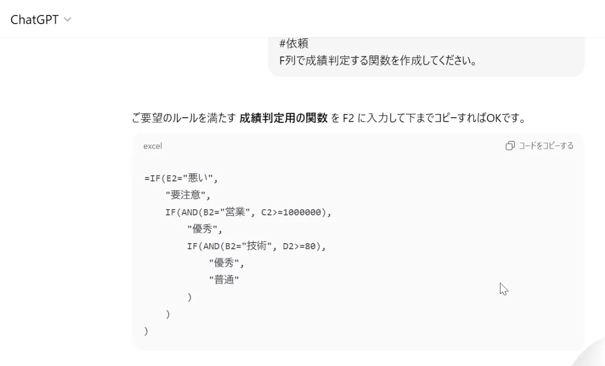 生成AIでExcel関数生成