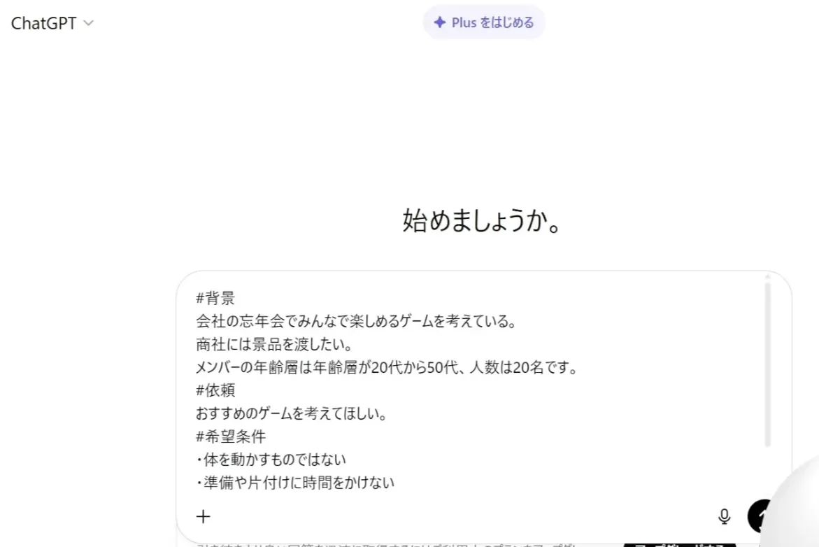 イベント企画のプロンプト作成